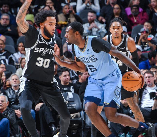 重新回到赛场之后,埃迪继续在场上欺负顶替文班亚马首发的科内特,不仅让后者全场战罢只有4中1的命中率,自己还靠着12中8的发挥,砍下了19分、15个篮板、1次助攻、1次抢断和1个封盖的两双数据,再加上首发砍下20分的韦尔斯,以及得分全部上双的三大替补斯潘塞、康查尔和兰代尔,让赛前不被看好的残阵灰熊,在客场和马刺激战到了最后一刻。