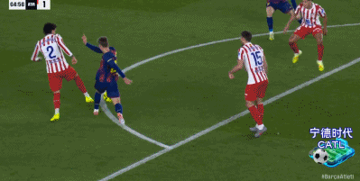第90+2分钟,马竞精彩配合,格列兹曼似传似射偏离目标