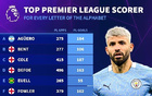 德转按姓氏首字母列英超历史最佳射手:亨利、凯恩、鲁尼在列